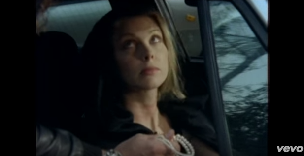 So there’s this woman driving. Presumably the one who crashed her car. And she’s wearing a pearl necklace that…appears…to…be…strangling her. Well. Okay. Necklaces get tight sometimes.